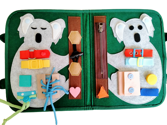 Our uniquely Australian designed Koala Busy Board stimulates learning through exploring, tinkering and manipulating. It develops fine and gross motor skills, strengthens memory and calms the mind.