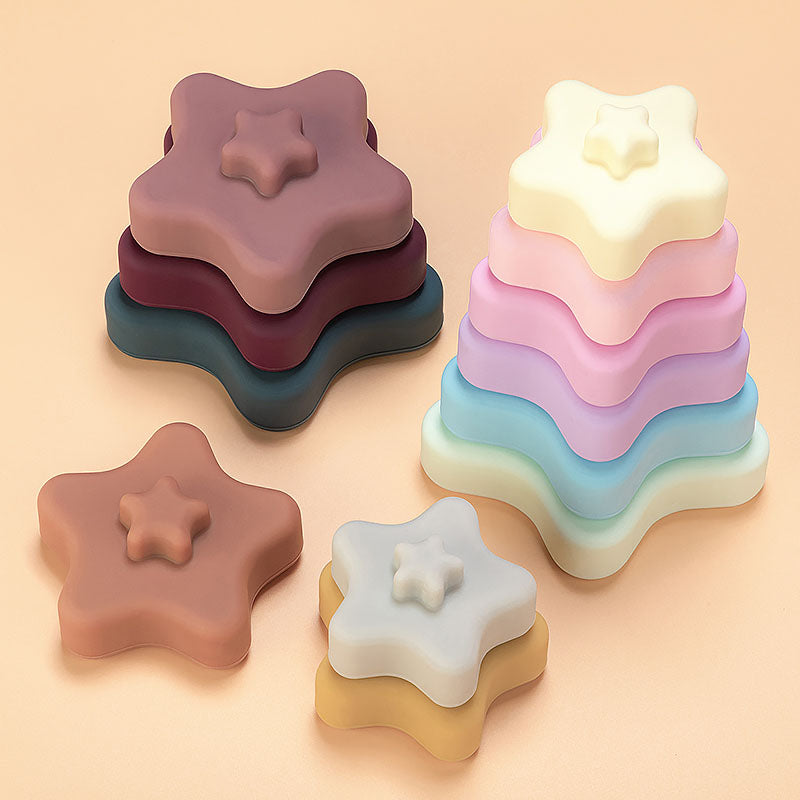 The star stacking toy is made from non-toxic, BPA free, 100% Food grade silicone making it a great sensory toy or teether for babies and toddlers.
